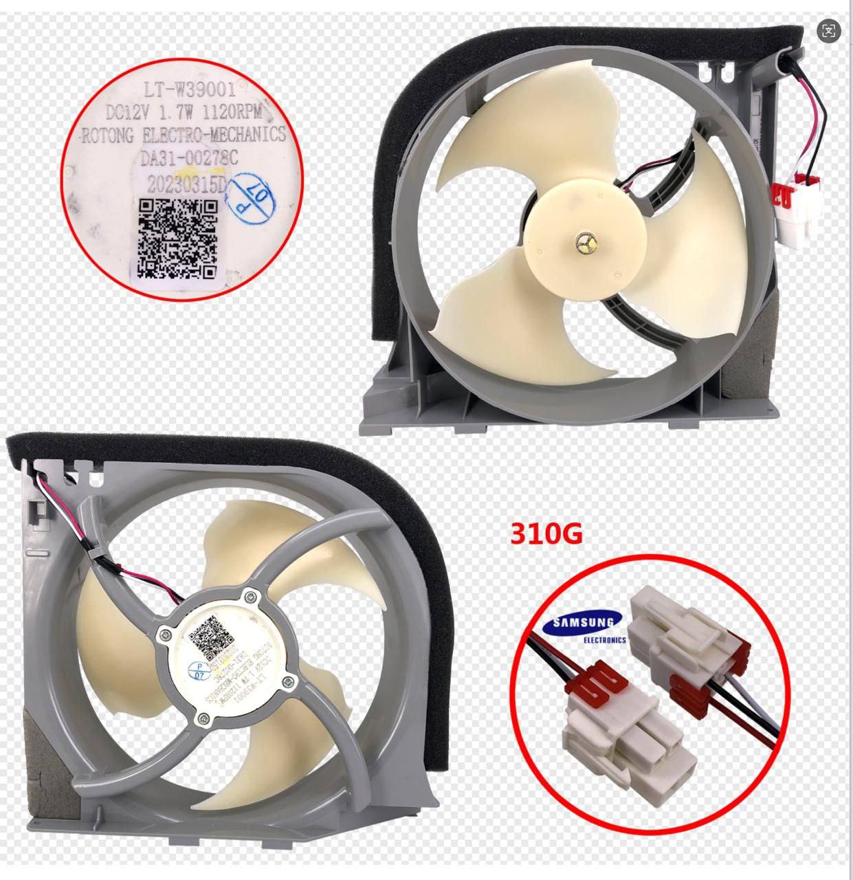 فن اینورتر یخچال سامسونگ مدل DA31-00278C یکی از قطعات کلیدی در سیستم تهویه و گردش هوای یخچالهای سامسونگ است. این فن با ولتاژ ۱۲ ولت DC و توان مصرفی ۲.۷ وات طراحی شده و بهصورت دقیق و هوشمند با برد اینورتر یخچال هماهنگ میشود. عملکرد این فن نقش بسیار مهمی در حفظ دمای ثابت، جلوگیری از یخزدگی (Frost)، کاهش مصرف انرژی و افزایش طول عمر کمپرسور دارد.